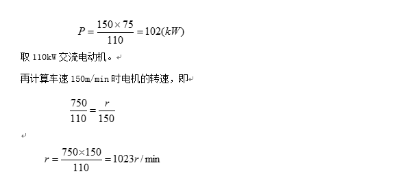首先計(jì)算車速150m/min時(shí)所需電機(jī)的功率,考慮到紙機(jī)為恒轉(zhuǎn)矩負(fù)載,車速增高時(shí)電機(jī)功率按比例增加,于是:
