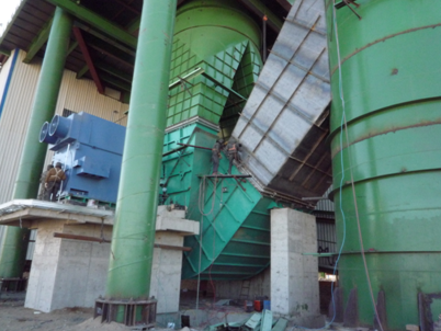 另一個是流量達到2000000 m3/h ,全壓達到5900 pa ,功率為5000KW的系統(tǒng)風機。而我們森蘭高壓變頻器改造的就是這臺系統(tǒng)風機,變頻器型號為SBH-100-5600。經(jīng)過打散粉碎后的物料在擋料錐的導(dǎo)向作用下通過擋料錐外圍的環(huán)形通道進入在風輪向分布的風力分選區(qū)內(nèi)。物料的分級中的粗顆粒物料由于其運動慣性大,在通過風力分選區(qū)的沉降過程中,運動狀態(tài)改變較小而落入內(nèi)錐筒體被收集,由粗粉卸料口卸出返回,同配料系統(tǒng)的新鮮物料一起進入輥磨機上方的稱重倉。細粉由于其運動慣性小,在通過風力分選區(qū)的沉降過程中,運動狀態(tài)改變較大而產(chǎn)生較大的偏移,落人內(nèi)錐簡體與外錐筒體之間被收集。