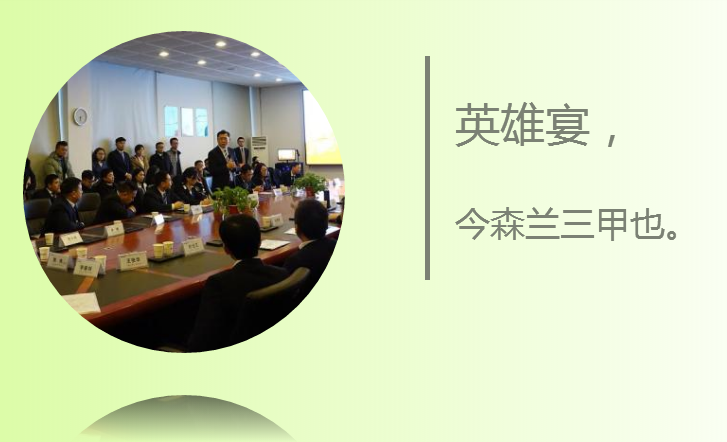 提起英雄宴, 是否會想起那場“華山論劍”。 “華山論劍”出自金庸《射雕英雄傳》,指武林高手在華山爭奪武功第一。與此相對的是森蘭銷售精英在中華大地競爭業(yè)績?nèi)祝簿褪巧m·英雄宴。 長歌一曲俠客行,劍鋒不染風(fēng)未停。 廿年老店,初心不忘,砥礪前行;仍修煉,顧視皆英雄也。若是肝膽照昆侖,又一年,可取三甲否? 吃江湖菜,行江湖事 提酒捧壺,做江湖人 尋找屬于自己的江湖路 其后一刻,將近酒,杯莫停; 君又一醉,道天明,執(zhí)劍忘天涯;三分酒氣,七分劍意;不鳴則已,來年定當(dāng)三甲。 具懷逸興壯思飛,欲上青天攬明月。 于江湖中行走,當(dāng)風(fēng)雨襲來的時(shí)候,愿做一個(gè)身披蓑衣、目光如炬的客! 半段賦,半盞茶,半身青衫,半筆江山……