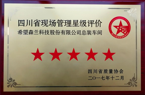 2018年1月4日,公司總裝車間被評為“四川省現(xiàn)場管理星級評價五星級現(xiàn)場”。同期榮獲五星級現(xiàn)場的公司還有通威太陽能(成都)有限公司、中國核動力研究設計院設計所、中國兵器裝備集團自動化研究所。