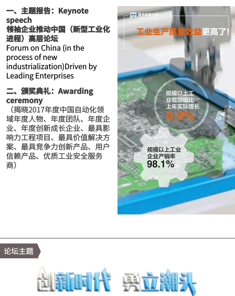 中國(guó)自動(dòng)化產(chǎn)業(yè)年會(huì)旨在銘記和展望中國(guó)自動(dòng)化產(chǎn)業(yè)發(fā)展的歷程,總結(jié)和表彰為其發(fā)展做出重要貢獻(xiàn)的個(gè)人、團(tuán)隊(duì)與企業(yè),以"公正、公平、公開、專業(yè)"的原則全面展現(xiàn)過(guò)去一年里中國(guó)自動(dòng)化產(chǎn)業(yè)的不斷進(jìn)步與閃光點(diǎn)!