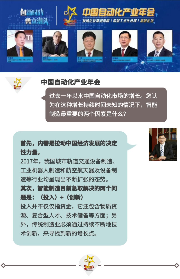 針對(duì)過(guò)去一年以來(lái)中國(guó)自動(dòng)化市場(chǎng)的增長(zhǎng)的原因、持續(xù)時(shí)間,以及智能制造的組成因素等問(wèn)題,論壇主持人對(duì)中國(guó)自動(dòng)化產(chǎn)業(yè)的領(lǐng)袖企業(yè)高層進(jìn)行了逐一采訪。